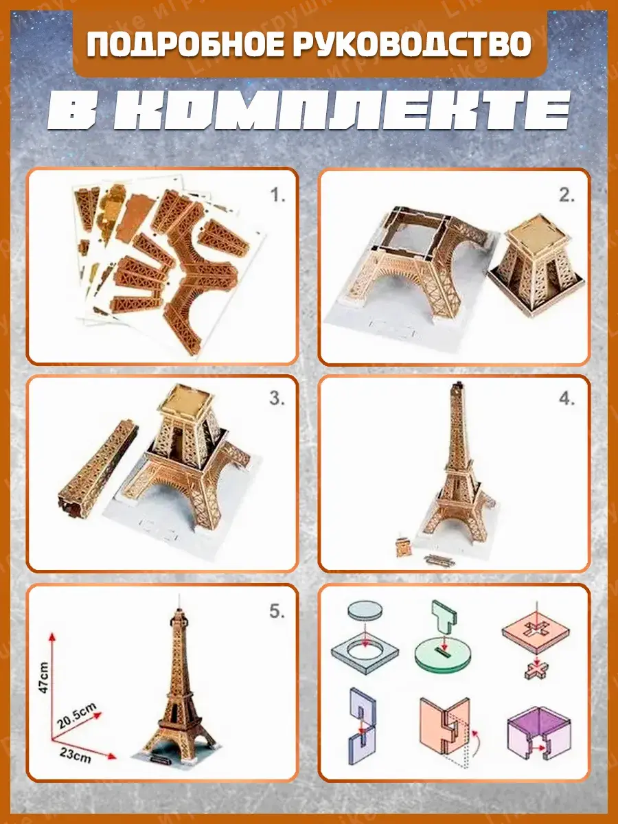 Откройте для себя увлекательный мир творчества с объемным пазлом, выполненным из качественных и безопасных материалов. Этот 3D конструктор предлагает уникальную возможность собрать впечатляющую модель самостоятельно, что делает его идеальным подарком как для мальчиков, так и для девочек. Пазлы подходят для взрослых и станут отличным способом провести время с семьей или друзьями. Объемные фигуры данного картонного конструктора позволяют не только развивать мелкую моторику и логическое мышление, но и создавать эффектные статуэтки для интерьера. Каждый элемент тщательно продуман, чтобы обеспечить легкость в сборке и высокую детализацию готовой модели. Процесс создания мозаики станет настоящим увлекательным приключением, которое порадует как новичков, так и опытных любителей головоломок. Пазл отлично подойдет в качестве подарка на Новый год или день рождения. Собирать такие объемные фигурки — это не просто игра, а настоящее искусство. Ваша работа станет стильным дополнением к любому интерьеру и подчеркнет ваш творческий подход к дизайну. Картонный материал гарантирует безопасность при использовании, что особенно важно при выборе подарка для детей. Вы можете быть уверены в том, что все компоненты конструкции выполнены из экологически чистых материалов. Такой подход делает продукт привлекательным для родителей, которые заботятся о здоровье своих детей. Каждый элемент пазла точно соответствует своим размерам и формам, что облегчает процесс сборки. Модели могут включать различные архитектурные стили и формы, предлагая широкие возможности для творчества и самовыражения. Кроме того, собрав такую модель своими руками, вы получите не только удовольствие от процесса, но также сможете гордиться созданием уникального предмета искусства. Итак, если вы ищете интересное занятие или хотите порадовать близких оригинальным подарком на праздник — этот 3D пазл из картона станет отличным выбором!