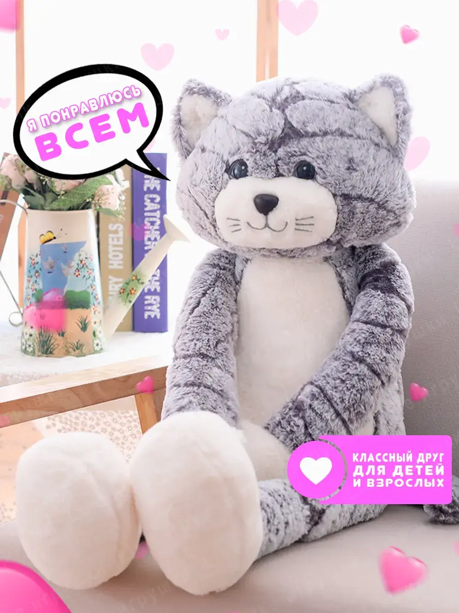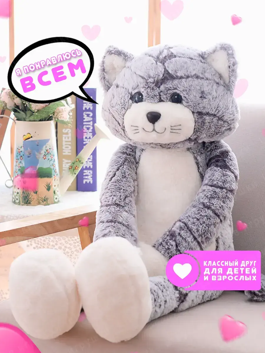 Like Игрушки представляют вам свою новинку - плюшевая игрушка кот размером 90 см. Эта детская антистресс игрушка с мягкими лапками, миловидной мордочкой и гладкой шерсткой станет идеальным подарком для вашей девочки или мальчика.