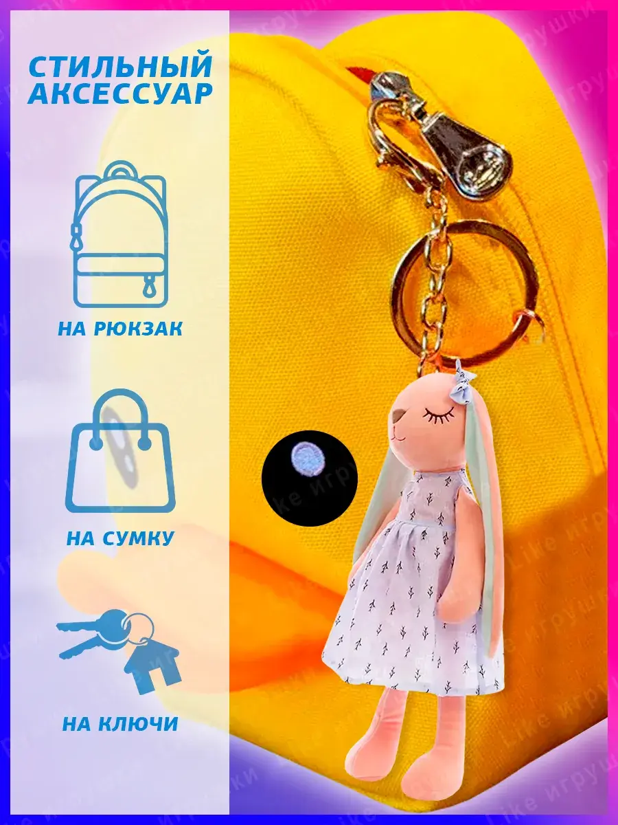 Этот брелок мягкий заяц - идеальный спутник, ведь его можно прикрепить на сумку, рюкзак или ключи, и он всегда будет рядом. Плюшевая игрушка легко заменит куклу и будет верным компаньоном в дороге или в детском саду. Его удобный размер в 15 см позволяет легко брать его с собой и наслаждаться его присутствием в любой ситуации.