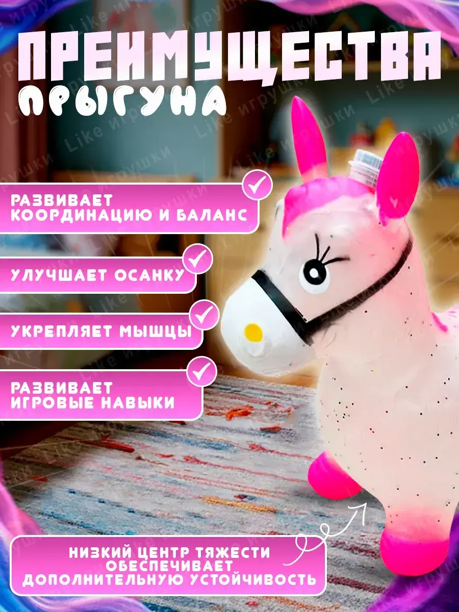 Эта детская игрушка прыгун отлично впишется в игры на улице или дома благодаря своему универсальному дизайну. Надувная лошадь станет не только другом для малыша, но и отличным тренажером для активного отдыха.