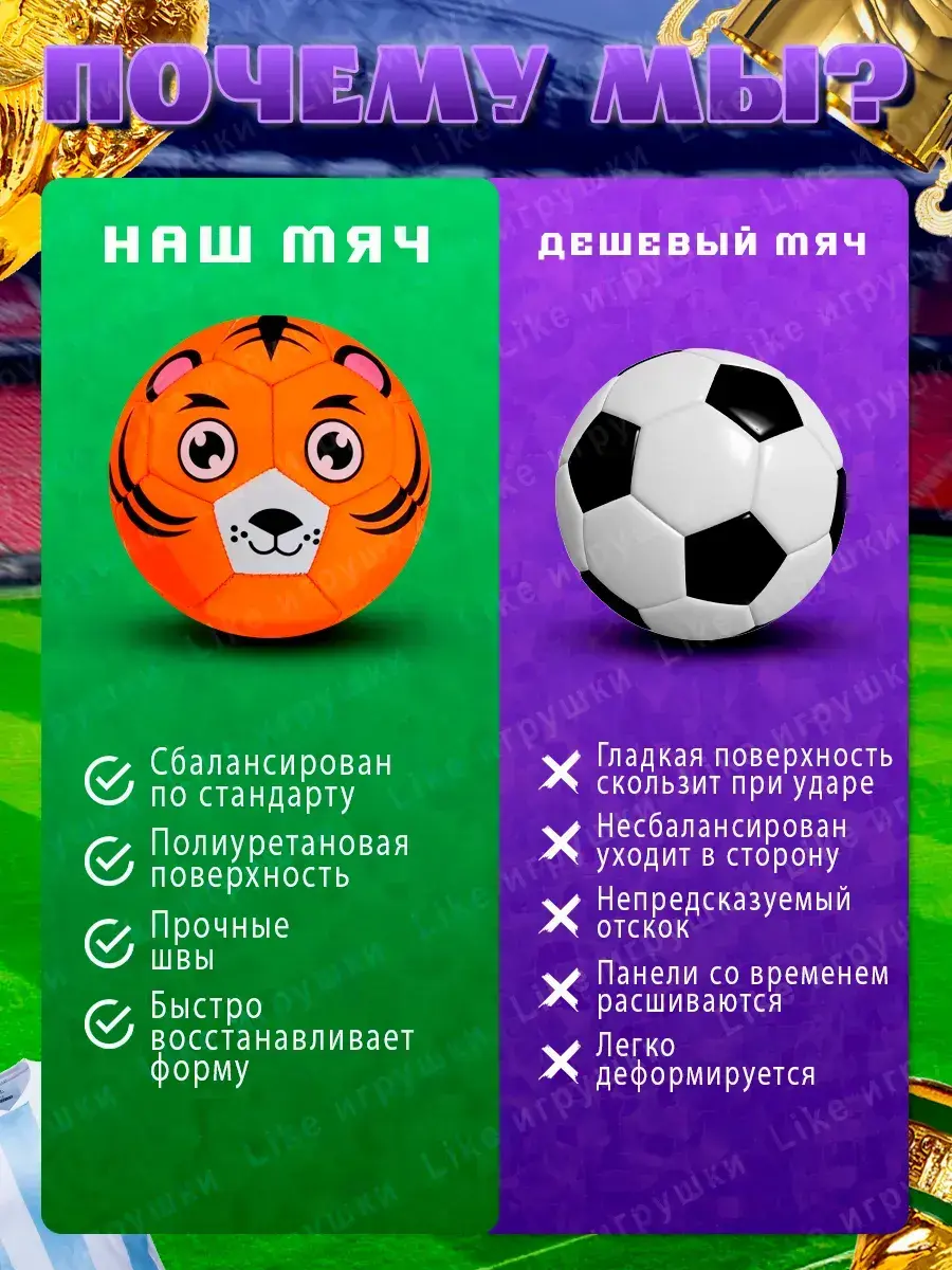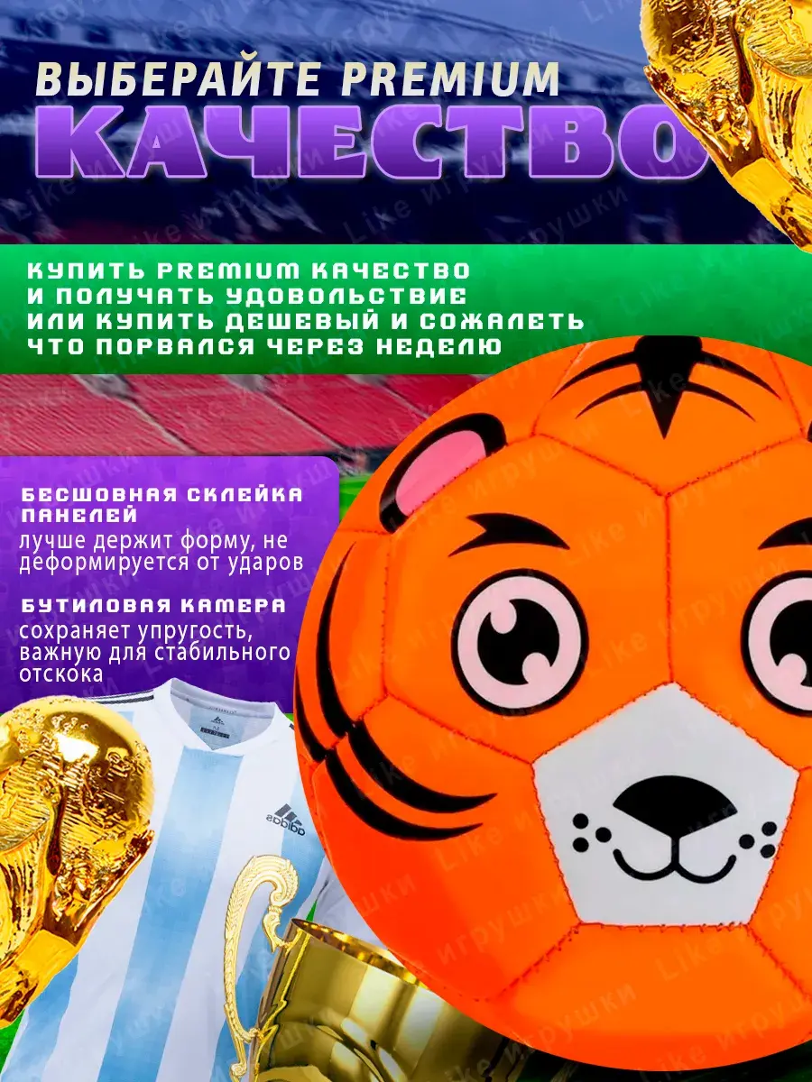 Представляем яркий и увлекательный мяч для игры в футбол, идеально подходящий для детей и подростков. Этот футбольный мячик обладает забавным дизайном с изображением милых животных, что делает его привлекательным для мальчиков и девочек. Каждое животное имеет выразительные черты лица, добавляющие игре веселья и радости. Материал мяча легкий и прочный, что позволяет легко контролировать его во время игры. Мягкая текстура обеспечивает комфорт при касании, а прочная конструкция гарантирует долгий срок службы даже при активных играх на улице или в помещении. Цветовая палитра мячика разнообразна: от яркого зеленого до насыщенного синего, включая оранжевый и красный оттенки. Каждый цвет привлекает внимание, создавая веселую атмосферу во время игры. Форма идеальна для тренировок и развлекательных матчей среди друзей. Этот спортивный товар станет отличным подарком для любого ребенка, способствуя развитию физической активности и командного духа. Легкость мяча позволяет маленьким игрокам без труда поднимать его и катить по полю, а интересный дизайн способствует увеличению увлеченности игрой. Мяч размер 2 для мини футбола подходит как для уличных игр на свежем воздухе, так и для занятий в зале. Он станет неотъемлемой частью детских развлечений, способствуя созданию незабываемых моментов в дружеских соревнованиях или семейных играх. Идеальный выбор для родителей, желающих подарить своим детям активное времяпрепровождение! Мяч поставляется в СПУЩЕННОМ виде для безопасной транспортировки!