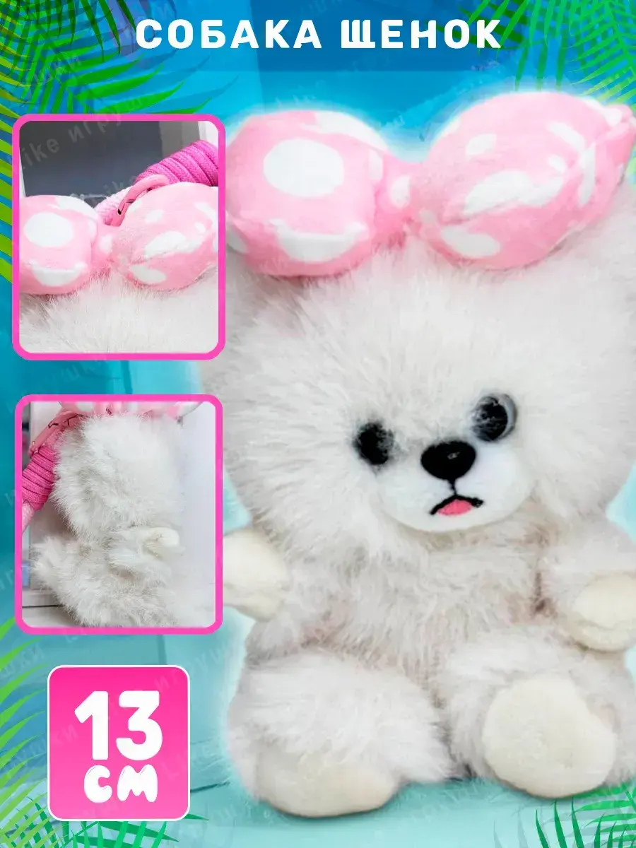 Очаровательный мягкий брелок в форме игрушки станет стильным аксессуаром для ваших ключей, сумки или рюкзака. Выполненный в виде милой собачки с бантиком, он привнесет нотку уюта и оригинальности в ваш повседневный образ.