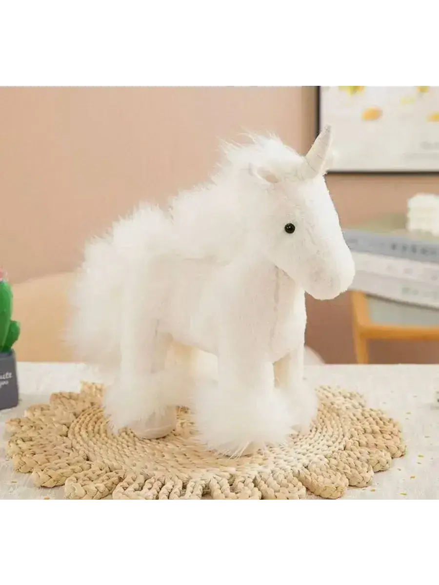 Игрушка изготовлена из гипоаллергенного плюша, а наполнитель сертифицирован и абсолютно безопасен для детей. Белоснежный цвет придает изделию утонченности и сказочности. Дизайн выполнен с акцентом на милые детали: пушистая грива и хвост добавляют объемности, а аккуратный рог подчеркивает волшебную тематику игрушки.