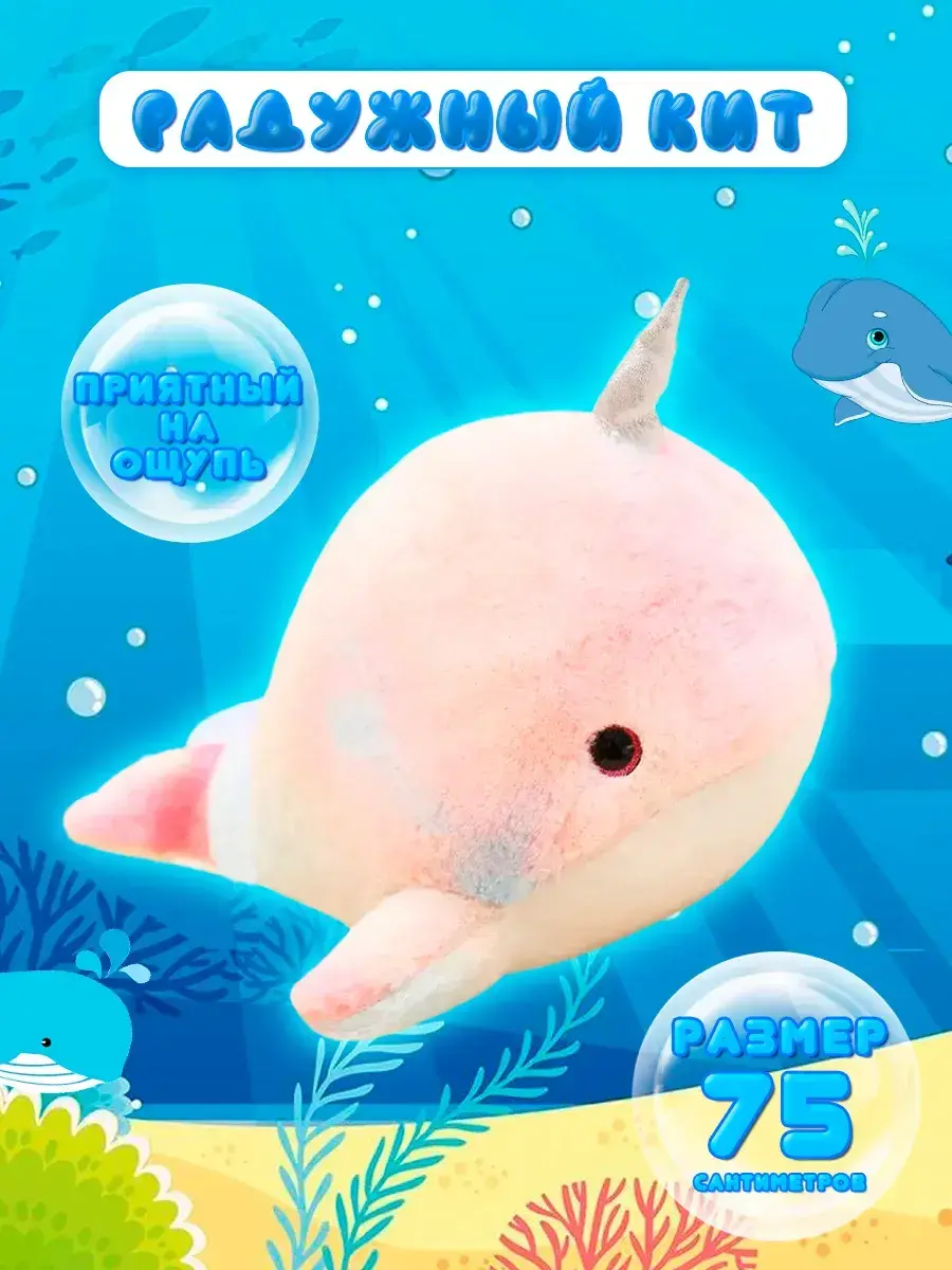 Встречайте мягкую игрушку кит единорог, которая станет настоящим другом. Плюшевая игрушка подушка представлена в виде волшебного кита с рогом единорога и нежной расцветкой. Это большая мягкая игрушка привносит уют и тепло в дом. Уютный дизайн и обнимающие формы делают ее идеальной для отдыха и игр.