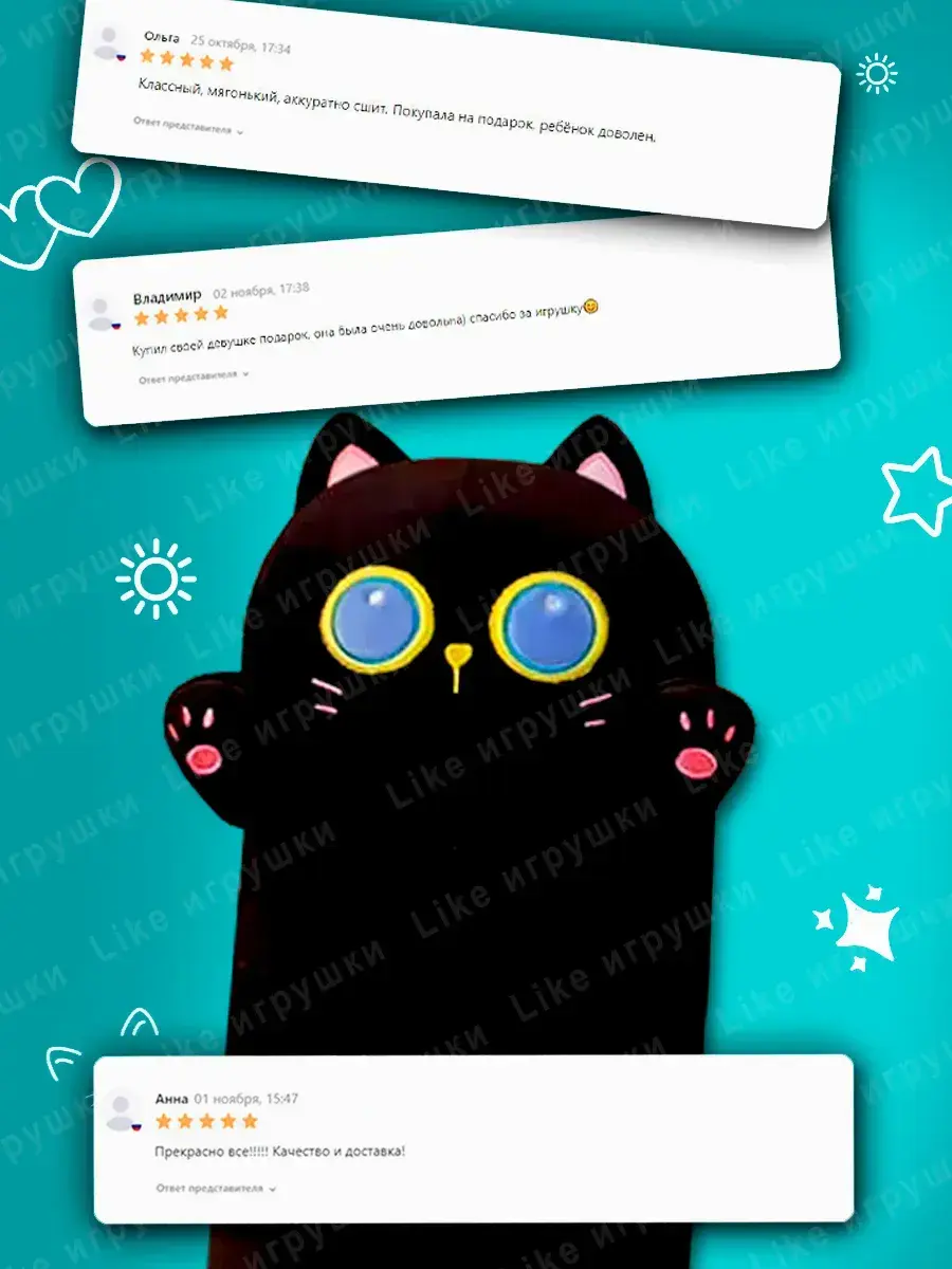 Откройте дверь в мир волшебства и нежности с нашей уникальной плюшевой игрушкой кота-батона. Закажите ее уже сейчас и позвольте вашему ребенку наслаждаться магией и радостью, которые она приносит. Волшебство ждет вас!