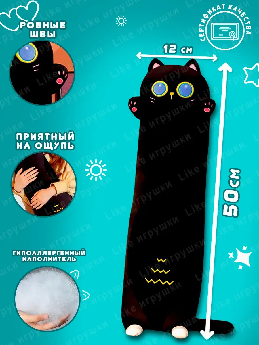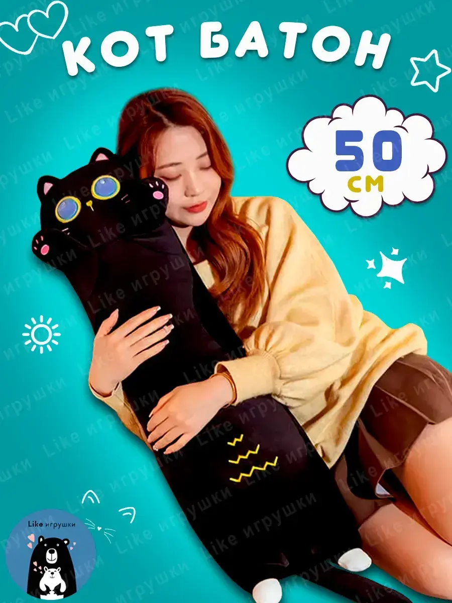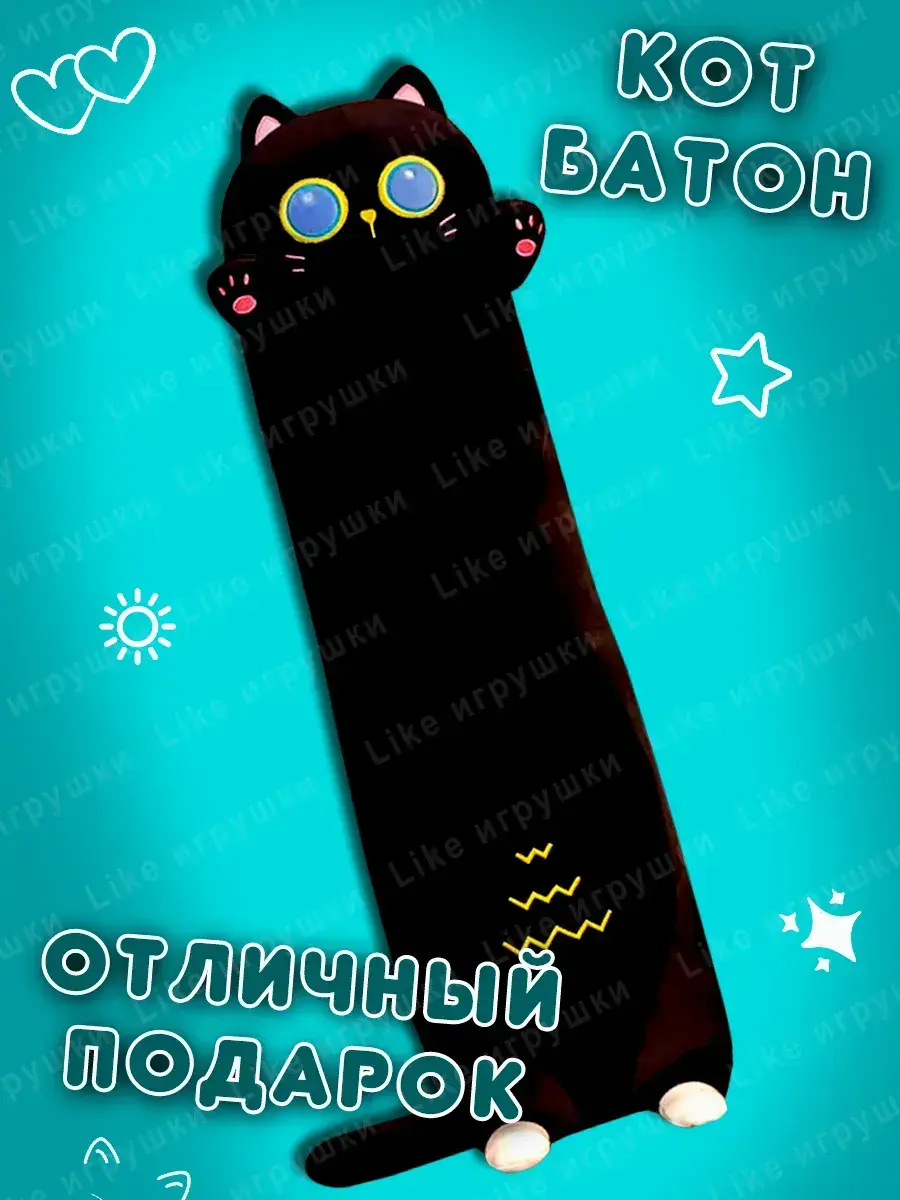 Добро пожаловать в мир волшебных игрушек от Like Игрушки! Представляем вам великолепную новинку – плюшевую игрушку кота-батона размером 50 см. Этот волшебный кот-сосиска обладает неповторимым очарованием, и однажды в его обнимках вы погрузитесь в мир сказочного сна и навсегда полюбите его нежность и магию.