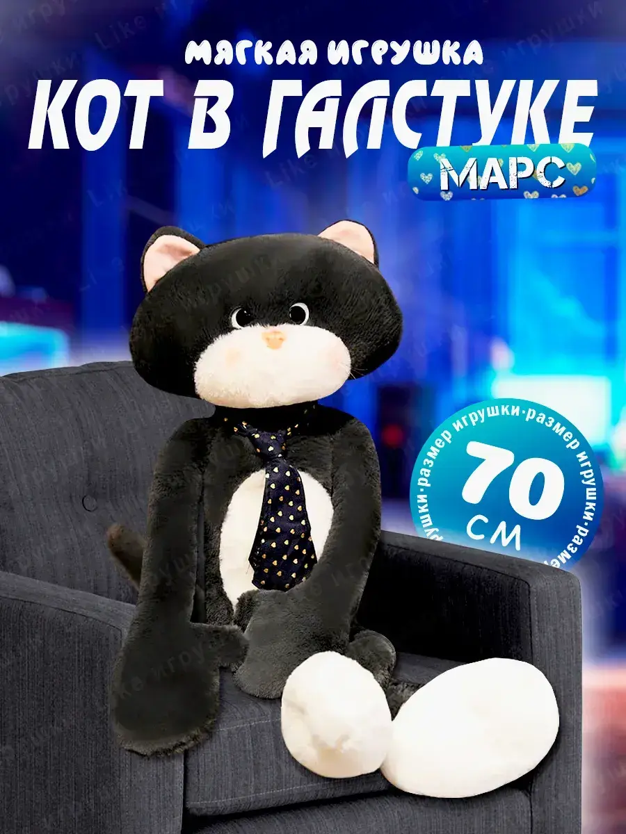 Мягкий котик с галстуком также отличается безопасным и гипоаллергенным наполнителем, который поддерживает здоровье детей и взрослых владельцев. Игрушки сертифицированы с учетом всех необходимых стандартов безопасности. Выбирая большого черного кота Марса, можно быть уверенным в высоком качестве и экологичности изделия. Кошки мягкие остаются одной из самых популярных категорий среди подарочных изделий благодаря их универсальности.