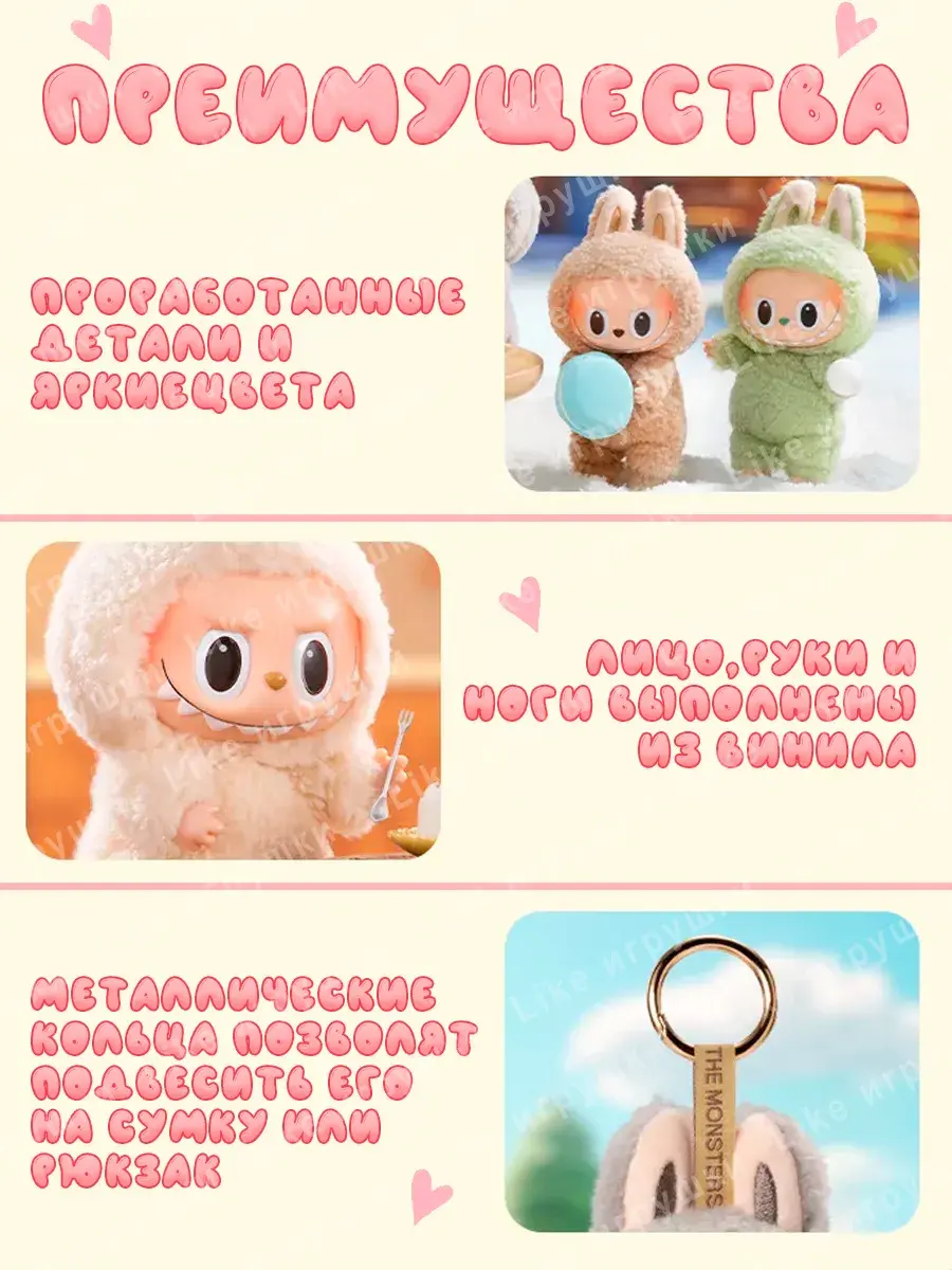 Откройте для себя удивительный мир мягких игрушек с ярким и игривым дизайном. Лабубу – это маленький монстр с заостренными ушами и забавными зубками, который привлекает внимание детей и взрослых. Игрушка эльф из серии Labubu pop mart станет идеальным подарком для мальчиков и девочек, добавляя в их коллекцию уникальных кукол.