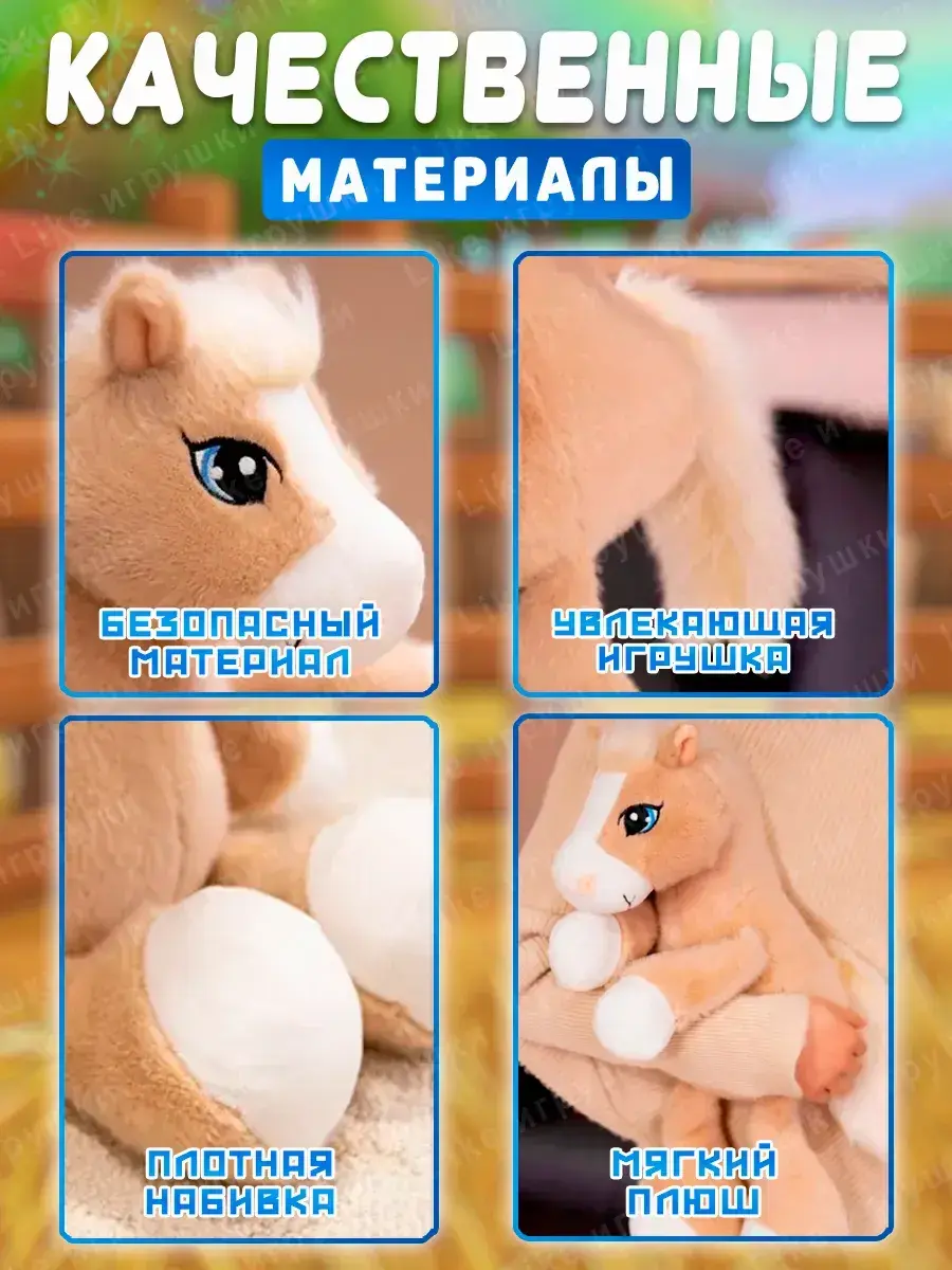 Если вы ищете детские игрушки с особыми характеристиками к празднику или просто хотите поднять настроение ребенку – плюшевая лошадка точно вам подойдет!