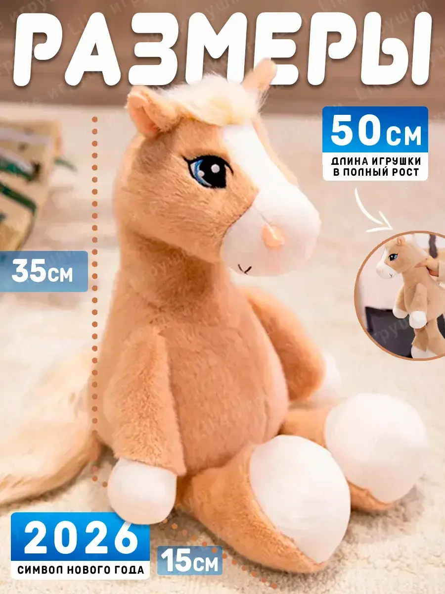 Плюшевая лошадка станет отличным подарком для взрослых, детей и малышей на новый год! Эта игрушечная коняшка выполнена из безопасного и качественного материала, а гипоаллергенный наполнитель делает ее идеальной для детских кроваток. Лошади символизируют энергию, поэтому такая игрушка – прекрасный повод создать праздничное настроение и отметить год 2026 с теплом.