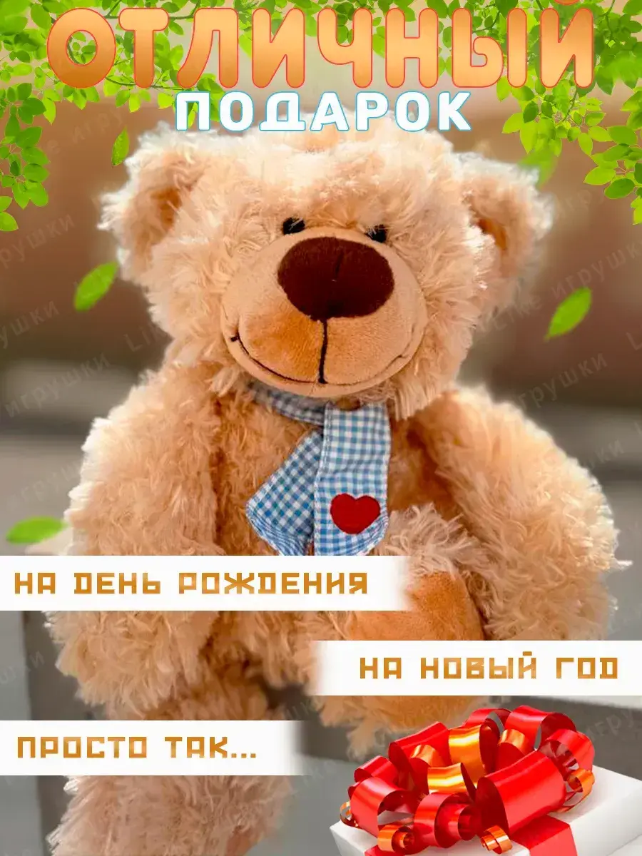Этот плюшевый друг, мишка тедди в шарфике размером 28 см, станет отличным подарком на Новый год, день рождения, день всех влюбленных или просто так, без повода.