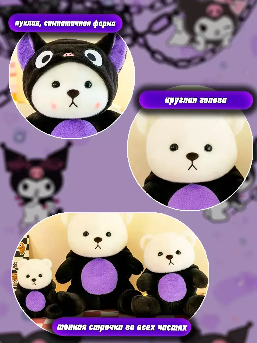 Этот мягкий мишка куроми в одежде станет идеальным спутником для ваших детей и даже взрослых. Наша плюшевая игрушка kuromi выполнена из высококачественного материала, чтобы обеспечить максимум комфорта и мягкости при прикосновении. Он также является антистрессовой игрушкой, которая поможет расслабиться и снять напряжение. Его компактные размеры и легкость делают его отличным выбором для путешествий.