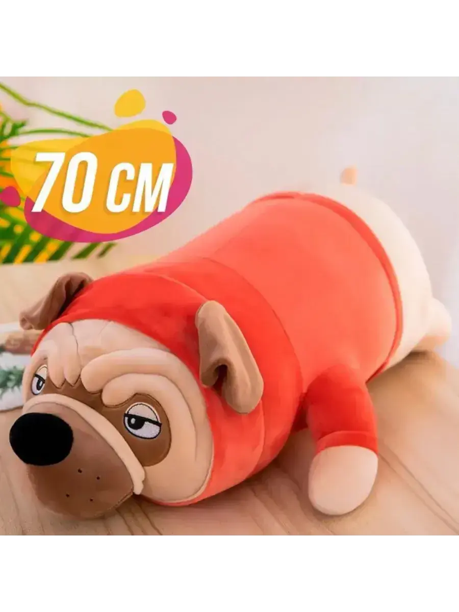 Погрузитесь в мир нежности и радости с милой игрушкой мопсом 70 см. Эта забавная плюшевая игрушка станет любимицей всех - и детей, и взрослых. Большой бульдог создан для бесконечных ласк, гладения, сжимания и обниманий, ведь именно для этого она предназначена. Ее приятный материал безопасен и гипоаллергенен, а благодаря использованию специального наполнителя, эта игрушка поможет снять стресс и станет как подушкой, так и игрушкой.