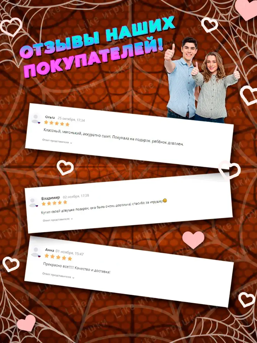 Игрушки сертифицированы и изготовлены из качественного материала, что гарантирует долговечность и безопасность использования. Наполнитель обеспечивает необходимую упругость, что позволяет игрушке сохранять форму даже после многократных обнимашек.