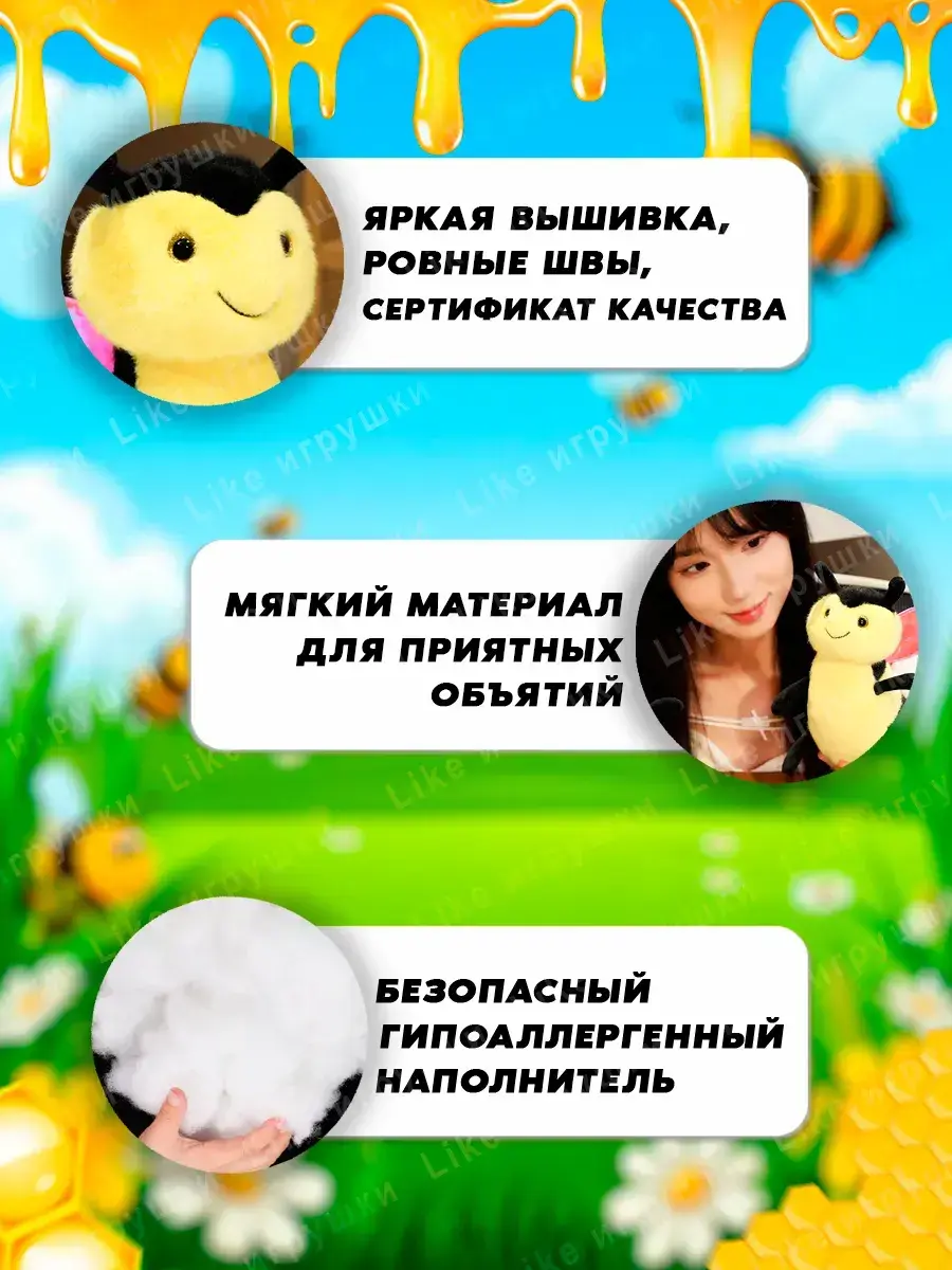 Эта игрушка сертифицирована по всем стандартам качества, поэтому вы можете быть уверены в ее безопасности и долговечности. Пчелка идеально подходит для малышей благодаря своей компактной форме и небольшому весу — ребенок сможет легко брать ее с собой куда угодно.