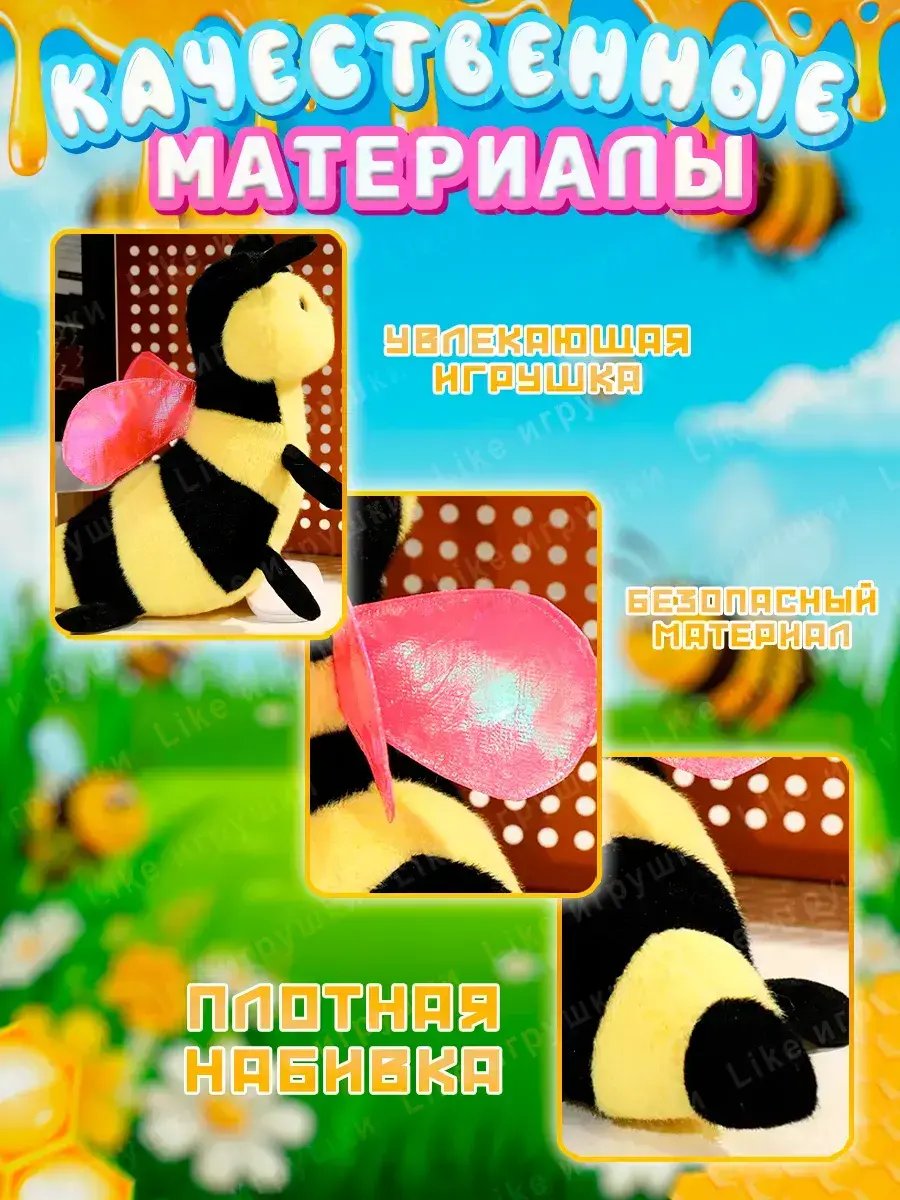 Милая мягкая игрушка в виде пчелки станет идеальным другом для ребенка. Яркий дизайн с желтым телом, черными полосками и деталями делает ее привлекательной для детей любого возраста. Игрушка украшена розовыми полупрозрачными крылышками, которые придают ей очаровательный вид. Лицо пчелы имеет добродушную улыбку и выразительные глазки, что вызывает у малышей теплые эмоции.