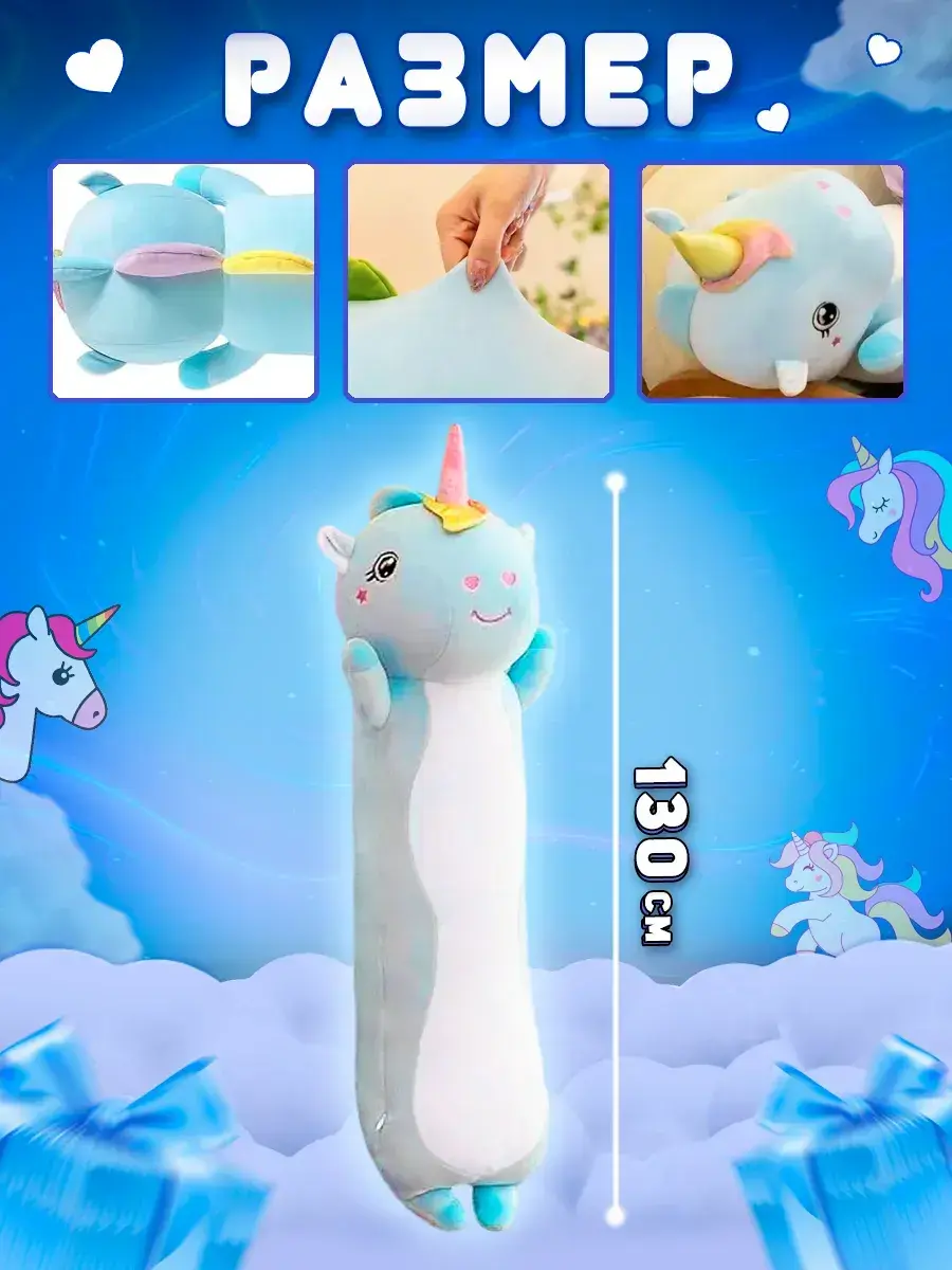 Встречайте мягкую игрушку единорог батон, которая станет настоящим другом. Плюшевая игрушка подушка представлена в виде волшебного единорога. Это большая мягкая игрушка привносит уют и тепло в дом. Уютный дизайн и обнимающие формы делают ее идеальной для отдыха и игр.