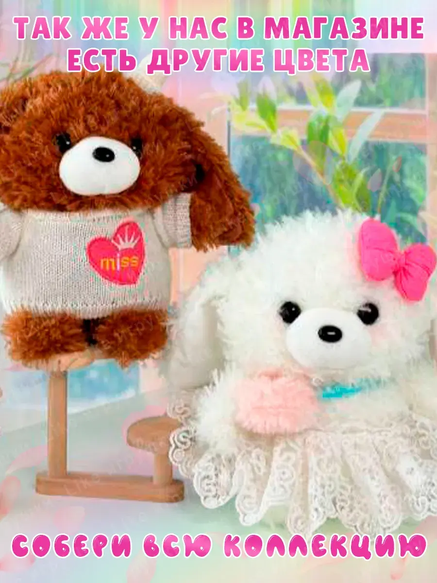 Плюшевая собачка пудель оснащена либо одеждой, либо милым сердечком. Такие милые мягкие маленькие игрушки идеальны для детей и для взрослых, также они отлично впишутся в любой интерьер.