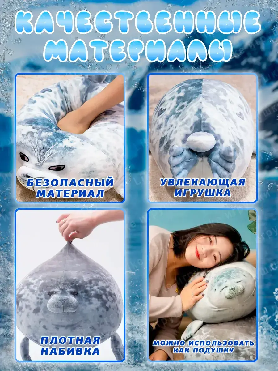 Игрушка морской котик изготовлена из безопасных и качественных материалов, сертифицированных по всем необходимым стандартам. Верхний слой выполнен из приятного на ощупь плюша, который не только мягкий, но и гипоаллергенный. Наполнитель также гипоаллергенный и удерживает форму даже после длительного использования или стирки. Текстура игрушки мем гладкая, без грубых швов, благодаря чему оно безопасно для детей.