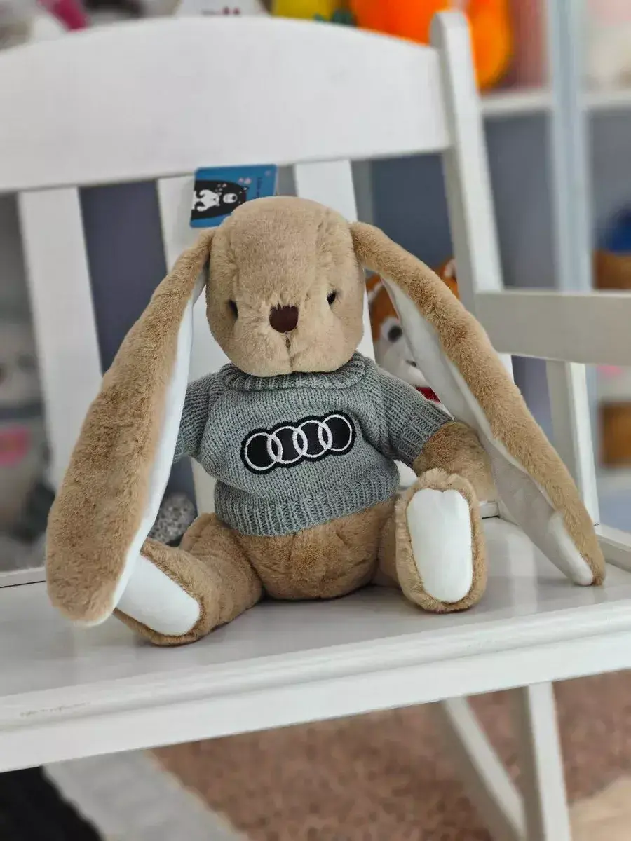 Зайка с логотипом Audi прикольный подарок. Игрушка Кролик в машину, не оставит равнодушным ни одного автолюбителя и людей с хорошим чувством юмора. Зайка в свитере подойдет в качестве подарка на любой праздник. Мягкий зайчик подойдет для девочки или мальчика в качестве любимой детской игрушки, которую всегда можно взять с собой в дорогу. Игрушка кролик с надписью авто милый подарок женщине в машину на любой праздник и просто так. Получив игрушку в авто в подарок, ваши близкие точно не останутся равнодушными. Подарите вашим дорогим людям положительные эмоции вместе с игрушкой от Like Игрушки!