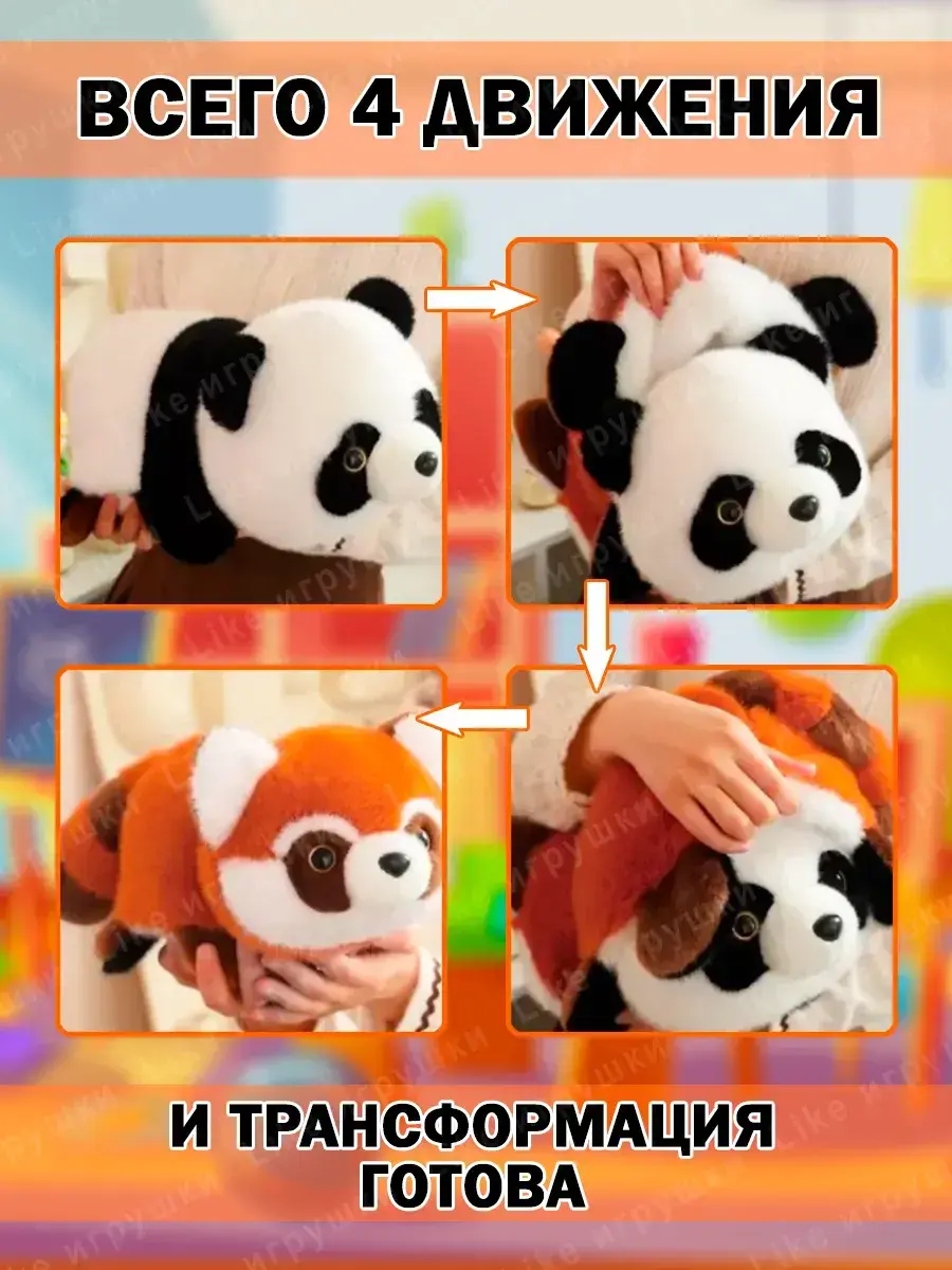 Енотик обладает пушистым хвостом и удивительным шармом. Панды известны своей дружелюбной натурой, поэтому эта игрушка подойдет для глубоких обнимашек во время чтения или игры на полу. Новым трендом стали такие двухсторонние игрушки трансофрмеры, которые также являются игрушками антистресс.