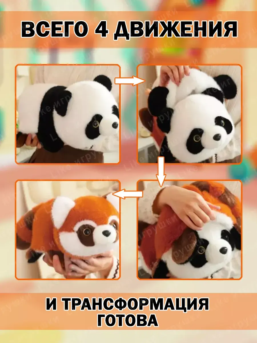 Енотик обладает пушистым хвостом и удивительным шармом. Панды известны своей дружелюбной натурой, поэтому эта игрушка подойдет для глубоких обнимашек во время чтения или игры на полу. Новым трендом стали такие двухсторонние игрушки трансофрмеры, которые также являются игрушками антистресс.