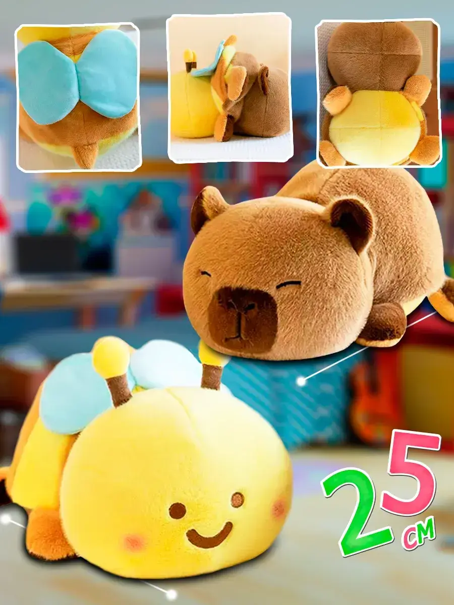 Представляем мягкую игрушку перевертыш, выполненную в форме милой капибары и пчелы. Эта плюшевая игрушка точно станет любимцем вашего малыша. Она сочетает в себе две разных породы животных, благодаря чему предоставляет множество возможностей для игры и обнимашек.