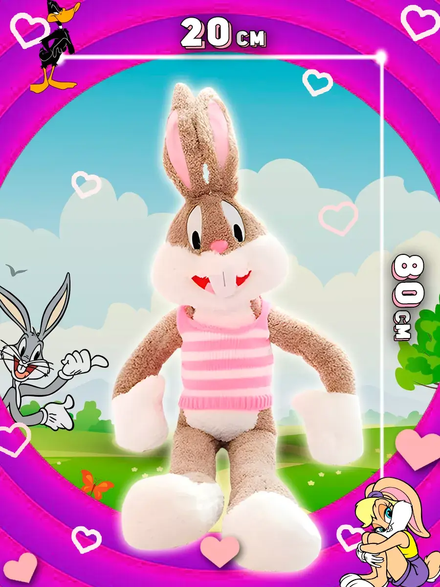Пушистый кролик Багз Банни в яркой кофте – отличный подарок для милых девочек и мальчиков. Этот заяц тасманский дьявол из популярных мультиков станет настоящей обнимашкой для ваших детей. Герой известного мультфильма заяц, он же кролик пришел прямо к вам домой, чтобы подарить радость и уют. Кролик Бакс`, как и Твити, герой мультфильма Луни тюнз. Эта мягкая игрушка обнимашка БагзБанни выполнена из высококачественных текстильных материалов, которые приятны на ощупь и безопасны для малышей. Гипоаллергенный наполнитель пух делает этого зайчика антистресс игрушкой и способствует хорошему настроению. Мультяшные глазки и улыбка на лице создают неповторимый образ мультяшного зайца looney tunes. Мягкие игрушки для девочек всегда актуальны и любимы. Багс Банни, как и Лола Банни – один из самых популярных героев среди детей разных возрастов. Уникальный стиль и неповторимый шарм делают его привлекательным для всех поклонников мультфильма и можно. Позвольте этому зайчику Бакс Банни стать частью вашего дома. Он будет верным другом вашему ребенку и надежной опорой в трудную минуту, так же с ним можно спать, такая сплюшка никого не оставит равнодушным. Милые зайцы из мультфильмов всегда вызывают теплые чувства и радостные эмоции. Не упустите возможность порадовать своих близких таким трогательным подарком, который заполнит ваш дом теплом и уютом.Плюшевый зайка Bugs Bunny уже ждет своего нового хозяина, чтобы заполнить его жизнь радостью и весельем!