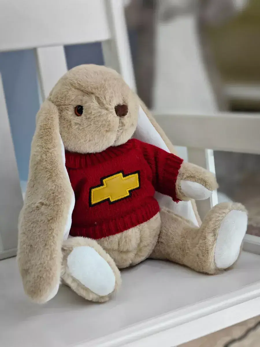 Зайка с логотипом Шевроле прикольный подарок. Игрушка Кролик в машину, не оставит равнодушным ни одного автолюбителя и людей с хорошим чувством юмора. Зайка в свитере подойдет в качестве подарка на любой праздник. Мягкий зайчик подойдет для девочки или мальчика в качестве любимой детской игрушки, которую всегда можно взять с собой в дорогу.Игрушка кролик с надписью авто милый подарок женщине в машину на любой праздник и просто так. Получив игрушку в авто в подарок, ваши близкие точно не останутся равнодушными. Подарите вашим дорогим людям положительные эмоции вместе с игрушкой от Like Игрушки!