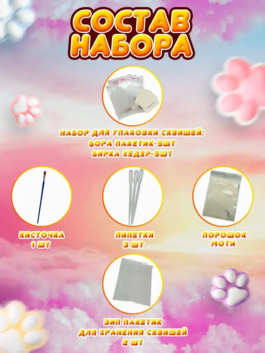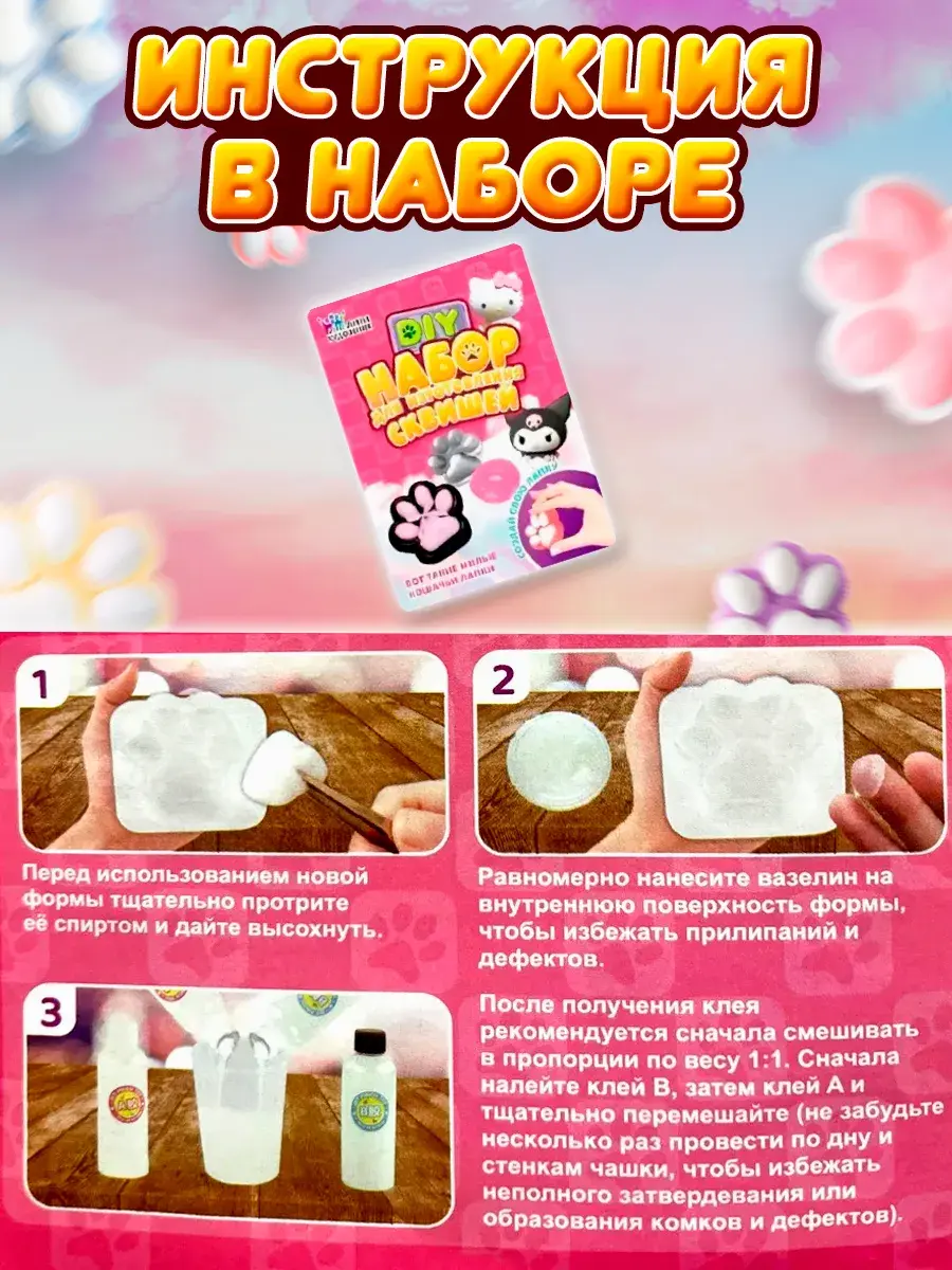 Лапка липкая, что дает возможность легко работать над деталями. Таба сквиш котик, лапка и куроми позволят создать уникальные игрушки. Лапки сквиш являются антистрессом и помогают расслабиться после долгого дня. Такой творческий набор привлечет внимание любителей ручной работы.