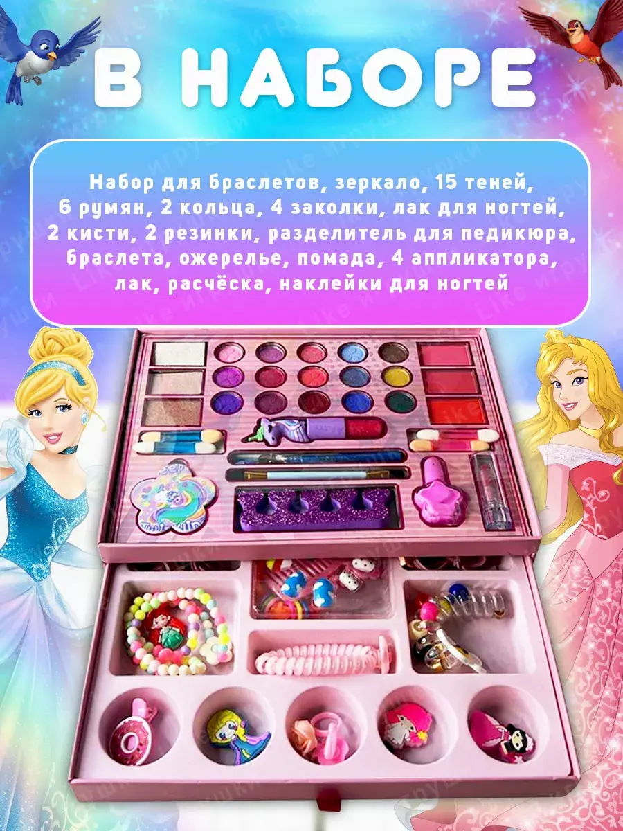 Бокс с косметикой имеет все шансы стать любимой игрушкой вашего ребенка благодаря своему многообразию: от теней до заколки - всё продумано до мелочей ради счастья ваших принцесс! Не упустите шанс порадовать своих близких этим чудесным набором!
