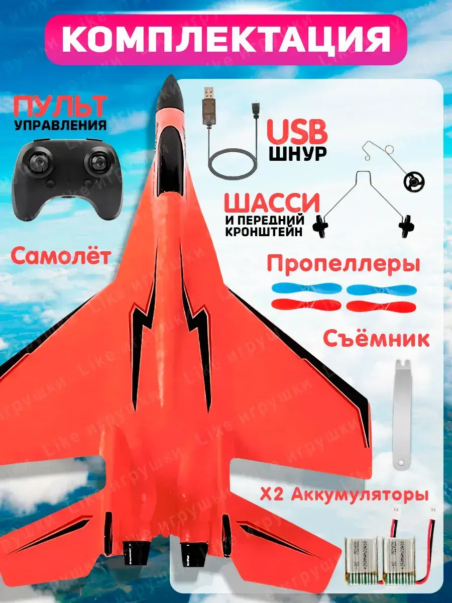 Игрушечный летающий истребитель – отличный подарок мальчику или девочке от 3-х лет. Радиоуправляемая модель самолета на аккумуляторе порадует не только детей, но и взрослых. Этот радиоуправляемый дрон создан для развивающих игр и приятного времяпровождения. LED подсветка делает его особенно привлекательным как для ребенка, так и для подростка. Этот летающий самолет-истребитель способен не только летать, но и плавать. Сверхпрочный корпус из пенопласта с мягким носом делает его безопасным для использования даже дома. Кроме того, у этой радиоуправляемой игрушки четыре пропеллера, что обеспечивает быструю и стабильную работу двигателя. Истребитель на радио управлении, также имеет железные шасси и стальной двигатель, что придает ему современный вид. Эта управляемая модель включает в себя технику высокого уровня: реактивный двигатель обеспечивает быструю скорость полета, а гибкий корпус делает его ударопрочным. В комплект входит пульт на батарейках (батарейки в комплект НЕ входят), что делает использование этого игрушечного планера очень удобным. Дистанционное управление с кнопками регулировки на руле пульта позволяет легко контролировать полет. Такой самолёт на пульте похож на вертолёт или квадрокоптер, за счет этого он становится незаменимым помощником для активных игр. Данный истребитель-игрушка радует своей быстрой и плавной работой, а также возможностью работы как на воде, так и на суше. Маленьким любителям техники такой самолет на радиоуправлении точно придется по вкусу! КОМПЛЕКТАЦИЯ: Самолёт, пульт управления (без батареек), 2 аккумулятора для самолета, USB провод для зарядки, 4 пропеллера, съемник и шасси.