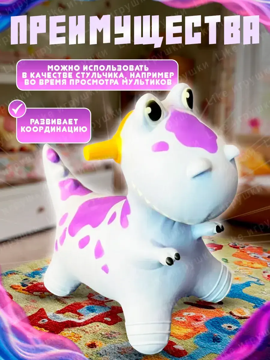Надувная игрушка в форме милого динозаврика с цветными акцентами станет ярким и увлекательным дополнением к играм вашего ребенка. Изготовлена из безопасного резинового материала, который отличается прочностью и мягкостью на ощупь. Лошадь прыгун имеет стильный дизайн с деталями: большие глаза, хвостик, зубастая улыбка и ушки ручки. Узор в виде пятен добавляет игривости и привлекает внимание детей. Эта игрушка попрыгунчик идеально подходит для активных игр дома или на улице. Попрыгунчик динозавр выполнен с удобными ручками-ушками, за которые малыш легко держится во время прыжков. Конструкция устойчива и безопасна для детей от 1 года. В комплект входит насос, который позволяет быстро надуть дино без лишних усилий. Такой аксессуар делает подготовку к игре легкой и быстрой. Подходит как для мальчиков, так и для девочек. Способствует развитию координации движений, укреплению мышц ног и формированию правильной осанки. Играя с этой резиновой игрушкой, дети получают массу положительных эмоций и удовольствия. Эта детская игрушка прыгун отлично впишется в игры на улице или дома благодаря своему универсальному дизайну. Надувной динозавр станет не только другом для малыша, но и отличным тренажером для активного отдыха.