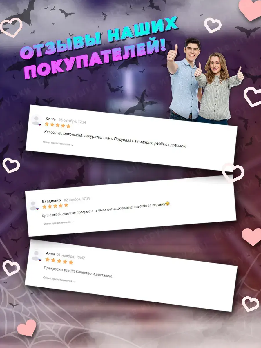 Таким образом, плюшевая кукла отлично подойдет как шикарный подарок на день рождения, новый год или просто так – без повода! Мы знаем – лучшие подарки происходят от чистого сердца!